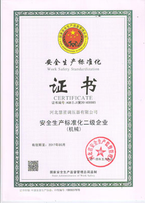 主導產品切斷式煤氣調壓器通過河北省經濟委員會、省標準計量局認可,獲得采用國際準認可證書